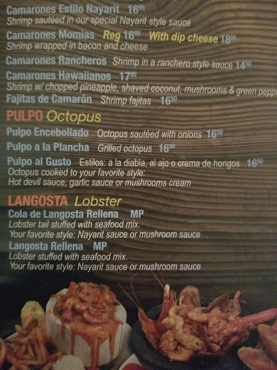 Pulpo, ostion, camaron, jaiba, callo, octopus, oyster, shrimp, crab, scallop