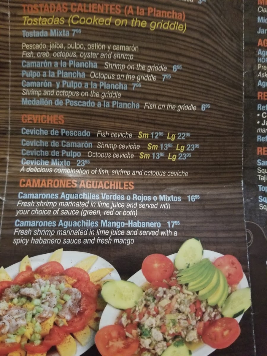 Pescado, jaiba, pulpo, ostion y camaron fish, crab, octopus, oyster and shrimp